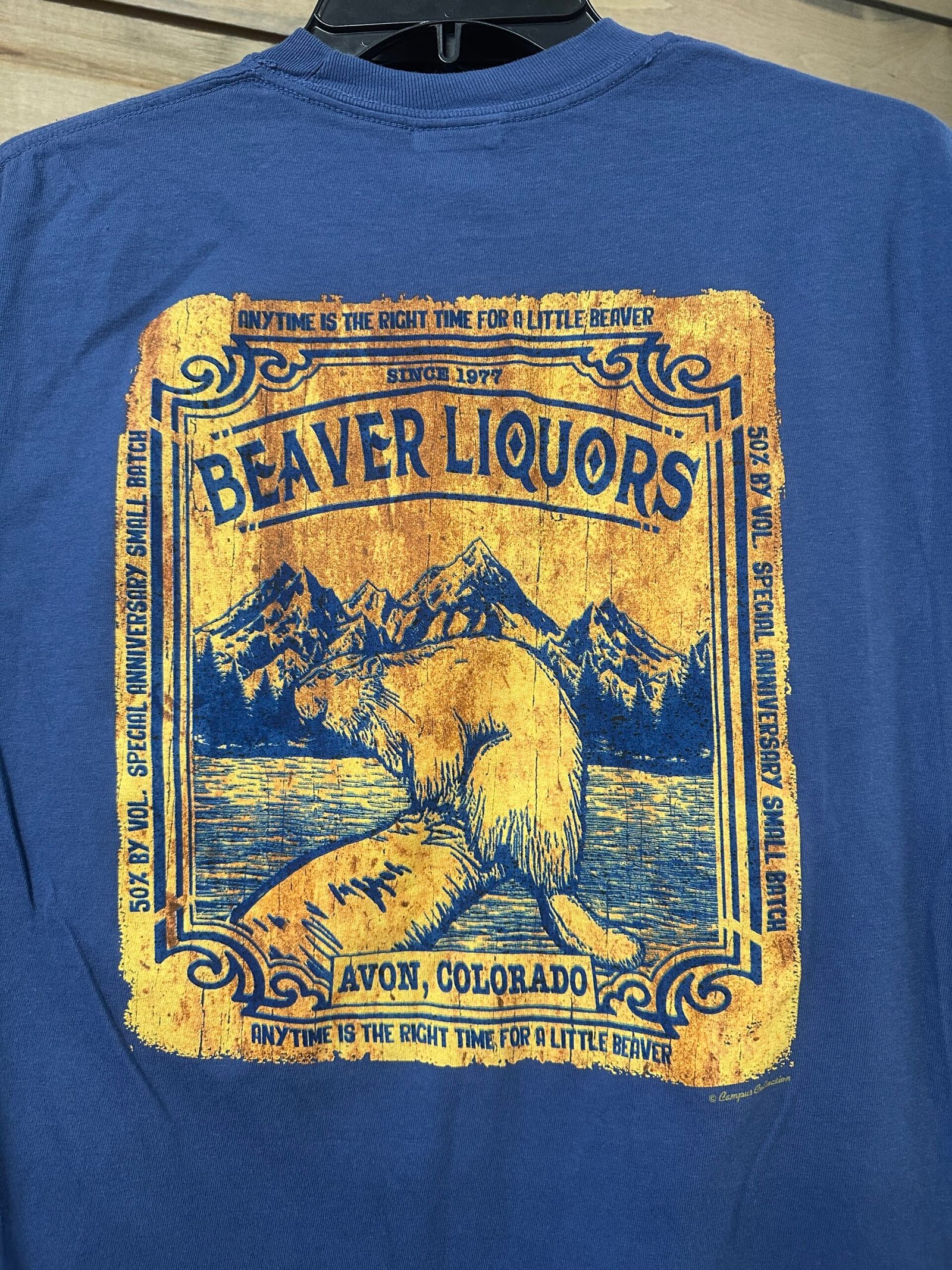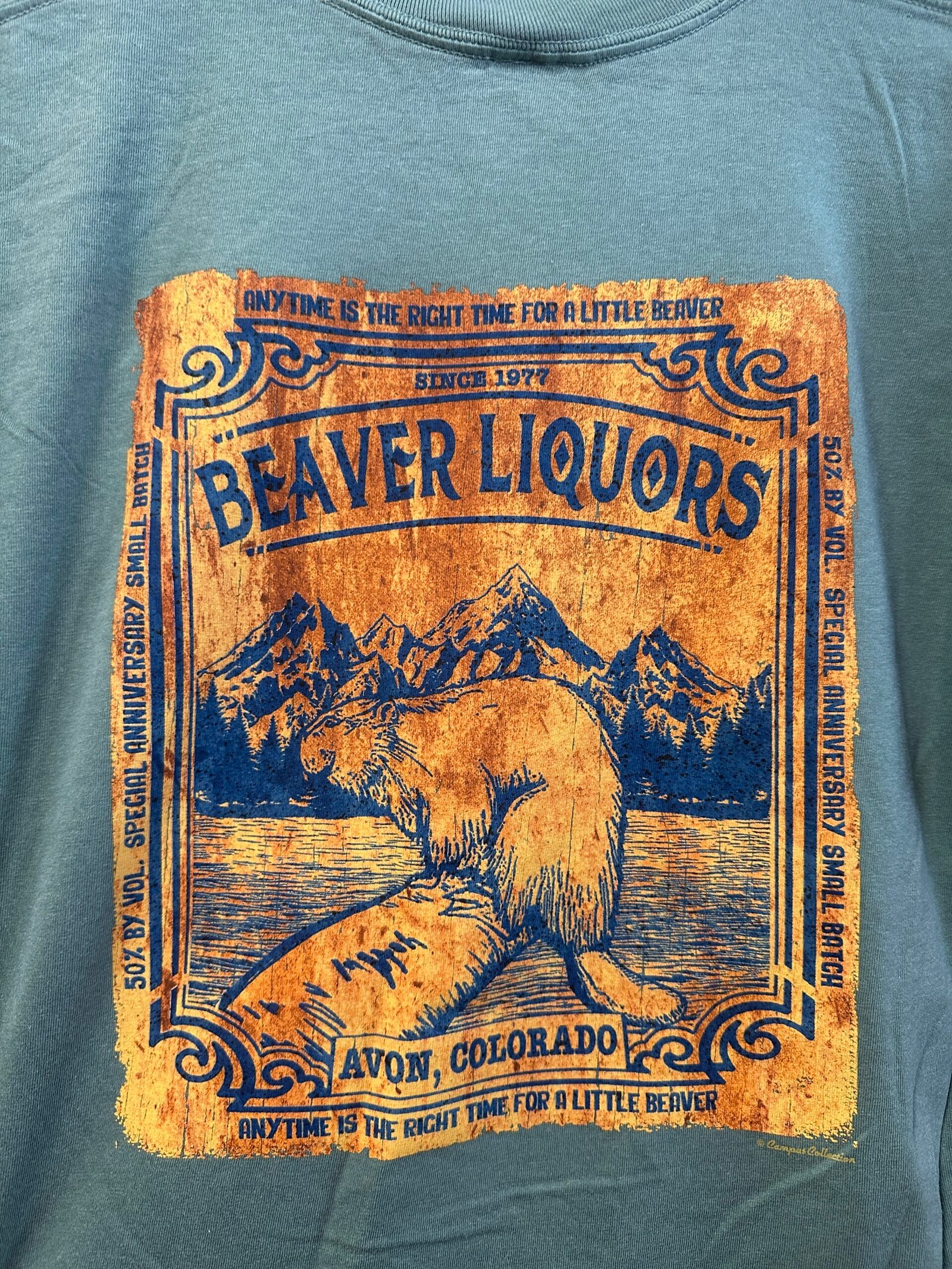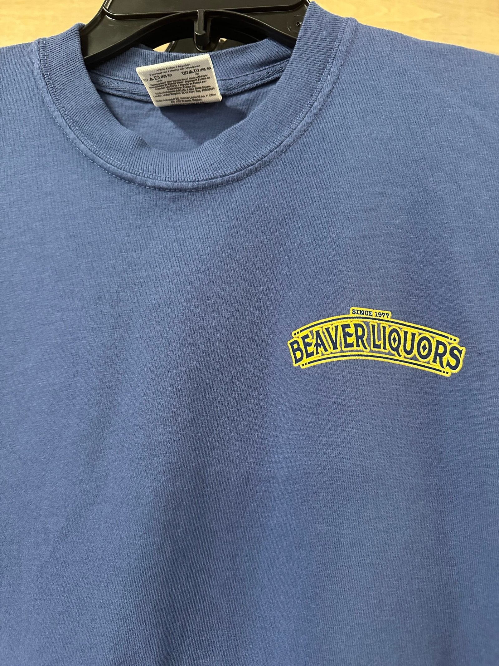 - This vintage Beaver Logo is truly one of a kind! The logo sits on the back of the shirt with a small Beave Liquor logo on the front left shoulder.
